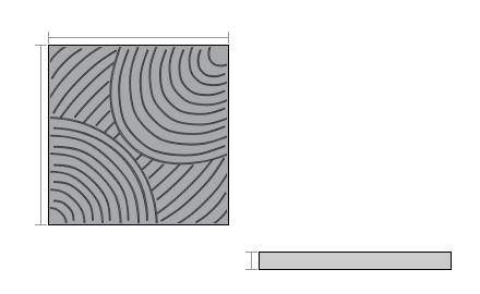 Piso prensado para zonas exteriores. Su textura está formada por líneas curvas bien diseñadas que permiten diversos diseños y composiciones.